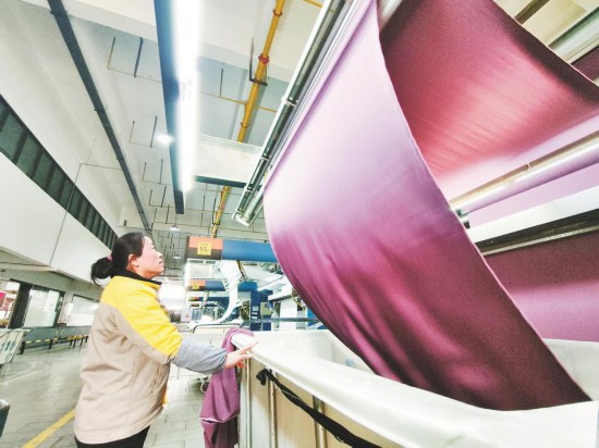 苏南早报网讯 2月13日,位于绍兴市柯桥区马鞍街道的浙江某科技股份有限公司内机器轰鸣,一卷卷白坯布送入染缸,经染色、烘干、定型等多道工序后,“变身”色泽鲜亮的面料。自正月初十复工复产以来,该企业产销两旺。截至目前,柯桥区110家印染企业已复工复产。(杜珊珊、潘鑫)