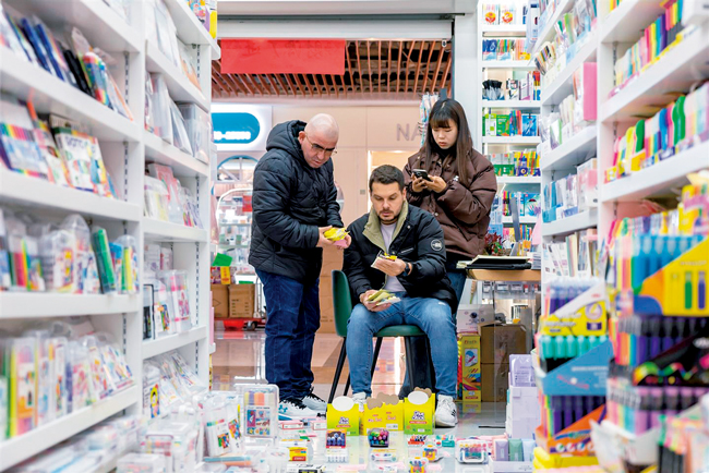 “这里的文具品质好,价格也很实惠。”一名外商选中了一款设计独特的笔记本,与商户就价格、交货期等问题进行交流。