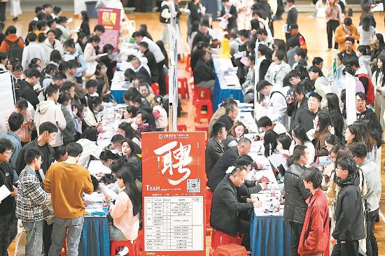 3月22日,在安徽理工大学举办的就业双选会上,2025届毕业生与用人单位展开面对面交流。当日,大会邀请来自全国各地的414家企事业单位,提供1万多个就业岗位。通讯员 代宜喜 摄
