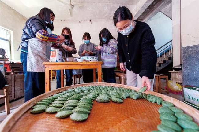 苏南早报网讯 临近清明节,金华市婺城区莘畈乡组织开展“多彩民俗迎清明”活动,让游客体验民间习俗,感受传统文化魅力。图为村民和游客在一起做清明粿。(胡肖飞)