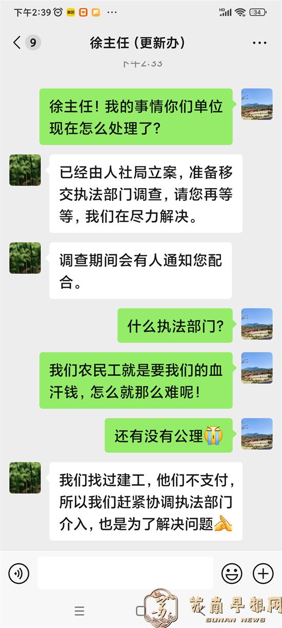 更令人更不可思议的是:当农民工再次追问,石家庄市城市更新促进中心回复的是:“目前,公安部门正在调查,肯定会有结果”。农民工不禁要问:人社部门、建设监管,你们“守土有责”还是“严重失职”?是严格执法还是在藐视国家农民工工资法律法规,不作为,乱作为?
