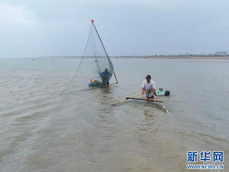 苏南早报讯 盛夏时节,在连云港市赣榆区海头镇沿海,靠海吃海的渔民们推着渔网捕捞虾皮,这种独特的捕捞方式被称为“推虾皮”。