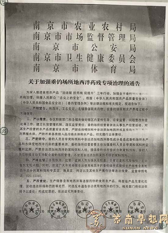 专项整治工作具体采取以下“五项”措施:一是开展鱼样、底泥检测,摸清地西泮残留状况;二是组成宣讲团,在节假日休闲垂钓人群多的时段,进场入户上门宣讲,拒绝使用不明饵料、窝料,提倡各垂钓场所提供合规饵料、窝料;三是实施对外经营垂钓场红、黄、绿牌制度,杜绝边污染边治理,进行历史残留地西泮消解试验,指导红牌单位科学治理;四是积极与问题窝料生产企业联系沟通,进行水产品质量安全风险提示;五是在该区有关垂钓场的视频号里积极发布正面信息,在秦淮河等天然水域倡导垂钓者使用垂钓场所自制窝料饵料,扩大宣传面和宣传效果。