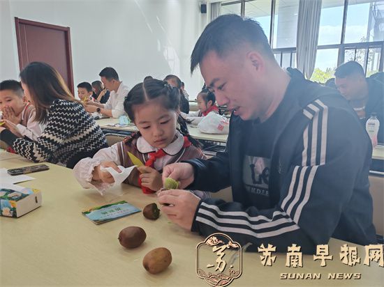 在猕猴桃科普小课堂上,镇江市农业科学院助理研究员陈成以图文并茂的形式为学生和家长详细地讲解了猕猴桃的各种知识——从猕猴桃的历史与文化,一粒种子到一棵大树,猕猴桃雌雄花的识别,到猕猴桃栽培技术……家长和孩子们对此充满好奇。