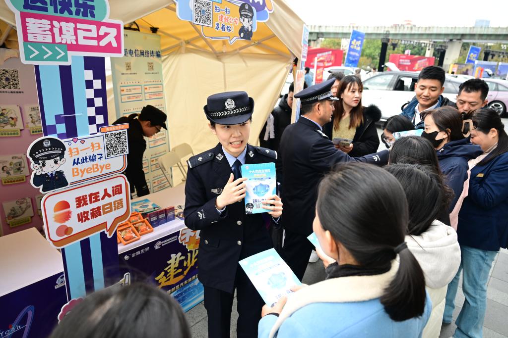 近日,南京市公安局建邺分局组织民警来到“建邺好生活”市集活动现场,摆摊设点向群众宣传反诈知识。通过身边真实案例,详细讲解涉黄金、现金等新型诈骗手段,提醒群众积极防范电信网络诈骗。