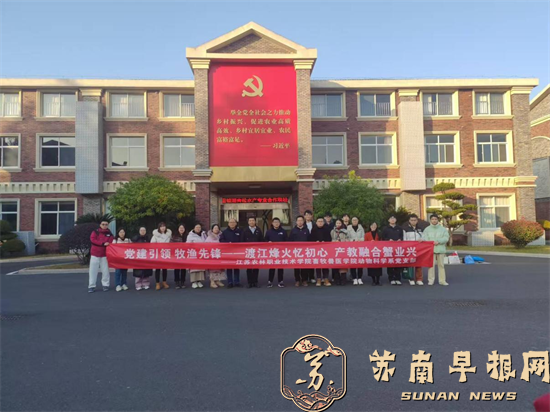 苏南早报讯 为深入学习贯彻习近平新时代中国特色社会主义思想,弘扬党的优良传统,加强党员教师思想政治教育,推动党建共建、党建业务与现代产业深度融合,12月15日,畜牧兽医学院动物科学系党支部组织开展“党建引领 牧渔先锋 — 渡江烽火忆初心,产教融合蟹业兴”主题党日活动。畜牧兽医学院党总支书记刘庆新,党总支副书记、院长汪善锋,支部书记、副院长王煜恒与党员教师及部分学生共计25人参加本次活动。