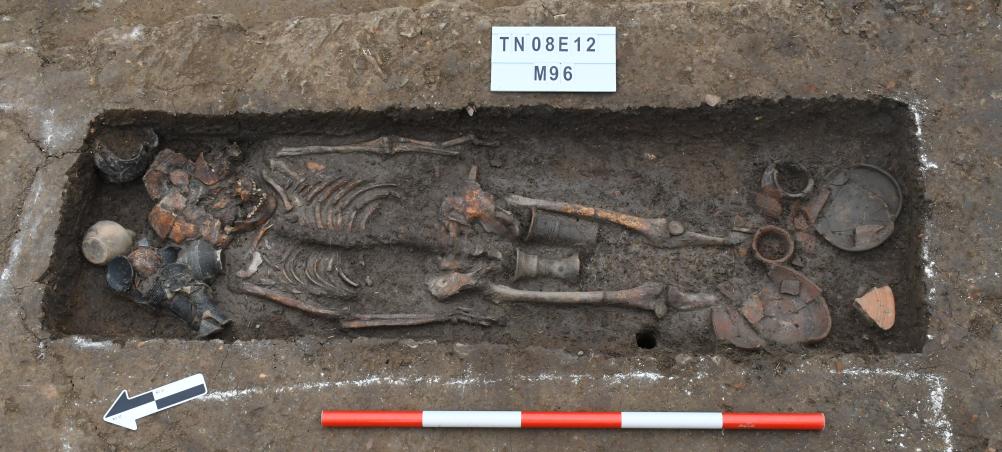 薛城遗址出土的96号墓。(南京市考古研究院供图)此外,薛城遗址出土了大量保存完好的人类遗骸,这在江南地区的出土遗存中极为罕见,为我国南方地区史前体质人类学研究提供了宝贵的实物资料。