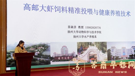 会议表彰了“高邮大虾”高质量发展先进单位和先进个人,对2024年“高邮大虾”产业高质量发展和省渔业现代化示范县创建工作作出部署,部分乡镇(园区)负责人和经营主体作交流发言,省淡水水产研究所水产品质量安全研究室主任朱晓华、扬州大学动科学院水产系主任苗淑彦进行了专题辅导。