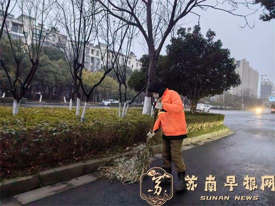 严格岗位值守,防患未然。为确保春节期间保洁无断档、路面无空岗,以更高标准更严要求落实保洁工作,把责任压实到岗,将分工精细到人,既要做好道路清雪防滑工作,又要做好市区内生活垃圾日常清运工作,以最快速度保证雨雪冰冻天气下生活垃圾日产日清、环境卫生干净整洁。(图文/许格丽)