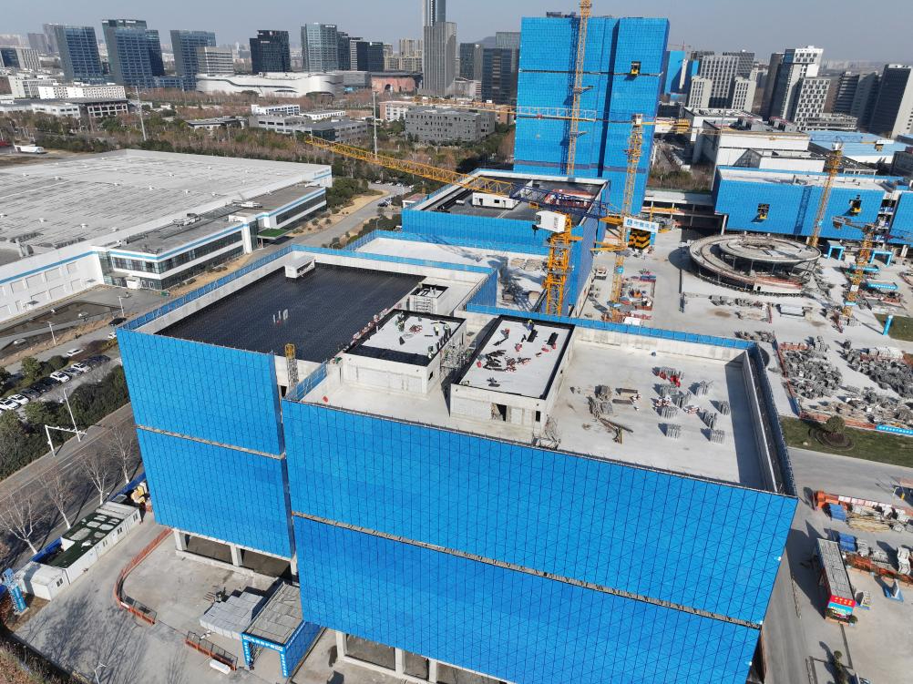 这是用无人机拍摄的中国电科院南京科研基地建设项目主体结构施工现场。