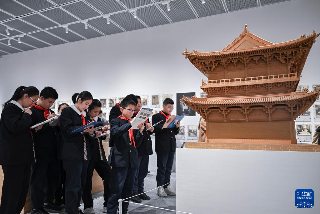 2月17日,华东师范大学第一附属初级中学的学生来到上海趣看美术馆,开启他们的“开学第一课”。学生们带着学习任务单走进“栋梁——梁思成与林徽因学术文献展”,探寻中国古建筑之美。