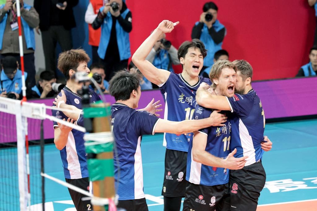 苏南早报讯(记者许东远)9日,2024-2025赛季中国男子排球超级联赛决赛展开最终回合较量。上海光明男排主场3:1战胜河北保定沃隶男排,从而在三场两胜制的比赛中以总比分2:1胜出,夺得队史第18个联赛冠军。 本场决胜战开始后,双方快速进入状态。河北队越打越勇,一度将比分优势扩大为21:12。上海队以17:25丢掉第一局。 第二局,双方依旧你追我赶,比分打到17平。随后上海队做出换人调整,逐步夺回主动权,以25:22扳回一城。 第三局比赛,上海队渐入佳境,击球成功率不断提升,河北队则出现起伏。上海队很快以20:14大比分领先,并以25:19再赢一局。 第四局,河北队凭借强攻策略一度掌控局面,但落后的上海队稳扎稳打,逐步赶超,以25:22拿下本局,以3:1胜出,最终夺得冠军。 上海男排主教练沈琼在赛后表示:“我要把上海男排带到最好的位置,必须取得冠军。站在赛场上我们就想做到最好。所有的比赛,大家都会全力以赴。我希望我们的队员,不管以后是否更新换代,每个人都去这样坚持。”