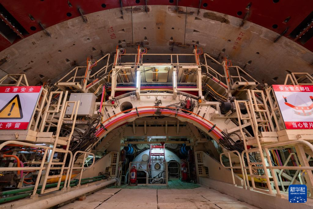 3月25日拍摄的“申拓号”盾构机始发仪式现场。 当日,随着南汇支线1标下盐路站至浦东国际机场T3航站楼站盾构区间14米级超大直径盾构机“申拓号”始发,市域铁路南汇支线全线所有盾构区间均已进入掘进施工阶段。南汇支线全长约34.86公里,共设6座车站,列车最高运行时速160公里。项目建成后,将成为临港新片区与东方枢纽、虹桥枢纽及上海主城区之间的快速联系通道。 新华社发 3月25日拍摄的“申拓号”盾构机前部的管片拼装机。 当日,随着南汇支线1标下盐路站至浦东国际机场T3航站楼站盾构区间14米级超大直径盾构机“申拓号”始发,市域铁路南汇支线全线所有盾构区间均已进入掘进施工阶段。南汇支线全长约34.86公里,共设6座车站,列车最高运行时速160公里。项目建成后,将成为临港新片区与东方枢纽、虹桥枢纽及上海主城区之间的快速联系通道。 新华社发 3月25日,工程技术人员在“申拓号”盾构机控制室内监控运行数据。 当日,随着南汇支线1标下盐路站至浦东国际机场T3航站楼站盾构区间14米级超大直径盾构机“申拓号”始发,市域铁路南汇支线全线所有盾构区间均已进入掘进施工阶段。南汇支线全长约34.86公里,共设6座车站,列车最高运行时速160公里。项目建成后,将成为临港新片区与东方枢纽、虹桥枢纽及上海主城区之间的快速联系通道。 新华社发