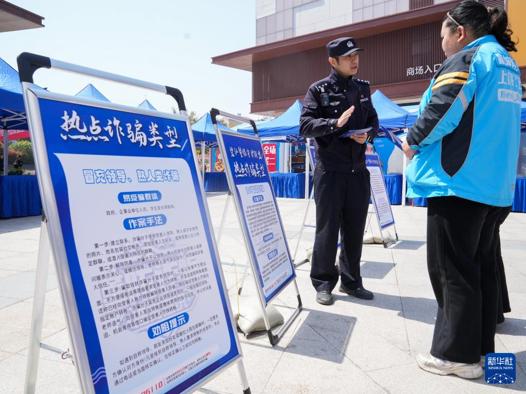 4月2日,上海市公安局闵行分局碧江路派出所民警在管辖社区内向群众发放反诈宣传手册及小礼品。 当日,上海市公安局闵行分局碧江路派出所联合街道、银行等多部门在管辖社区内开展形式多样的反诈宣传活动,普及各类反诈安全知识。 新华社记者 丁汀 摄 4月2日,上海市公安局闵行分局碧江路派出所民警在管辖社区内向群众普及反诈安全知识。 当日,上海市公安局闵行分局碧江路派出所联合街道、银行等多部门在管辖社区内开展形式多样的反诈宣传活动,普及各类反诈安全知识。 新华社记者 丁汀 摄