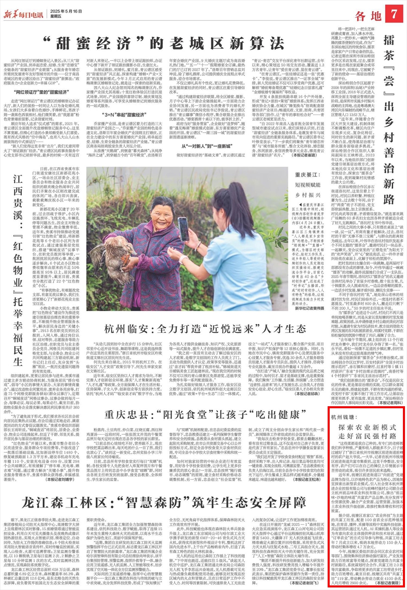 “这些菜都是我自己种的,有专门的老师教我们科学种植,产量和收入都能多不少,日子越过越好了!”浙江省杭州市钱塘区前进街道前峰村的农户赵大爷说。一大早,记者在杭州市钱塘区前进街道共富市集看到,这里干净整洁,安全有序,农户们可以在自己的摊位上尽情展示辛苦劳动的成果,吸引许多居民前来选购。 近年来,钱塘区前进街道以“向前进”党建品牌为指引,以沙地特色农产品为核心,因地制宜探索出新型农业模式。引入社会资本杭州萧进企业控股有限公司与前峰村强村公司联合成立杭州前品味农业科技有限公司,推出“前品味·沙地的味道”共富农产品品牌;充分发挥平台资源优势,融合产业资源、运营资源,加强本土农业科技升级创新,助推村集体增收和村民致富。 据介绍,钱塘区首家以“农业科技”为主题的共富工坊里,配套100亩农业示范种植基地,在育苗、播种、采摘等流程中实施科技创新。其运营团队通过无人机、AI采摘机器人等设备为有意向农业主体提供种苗和技术培训,通过“订单农业”的方式引导参与种植。共富工坊去年7月成立以来,吸纳本地劳动力150余人,带动村集体增收4.7万余元。 今年,钱塘区委组织部会同区农业农村局等部门,围绕集体经济推动强村富民、产业发展助力百姓致富等关键点,探索党建助力共富乡村新路径,系统谋划村企合作、共富工坊2.0版等共富载体,争取将更多的共富工坊带进乡村,助力百姓增收。截至目前,钱塘区共有“共富工坊”119家,带动剩余劳动力就业4100余名,人均月增收2900余元。(本报记者黄筱)