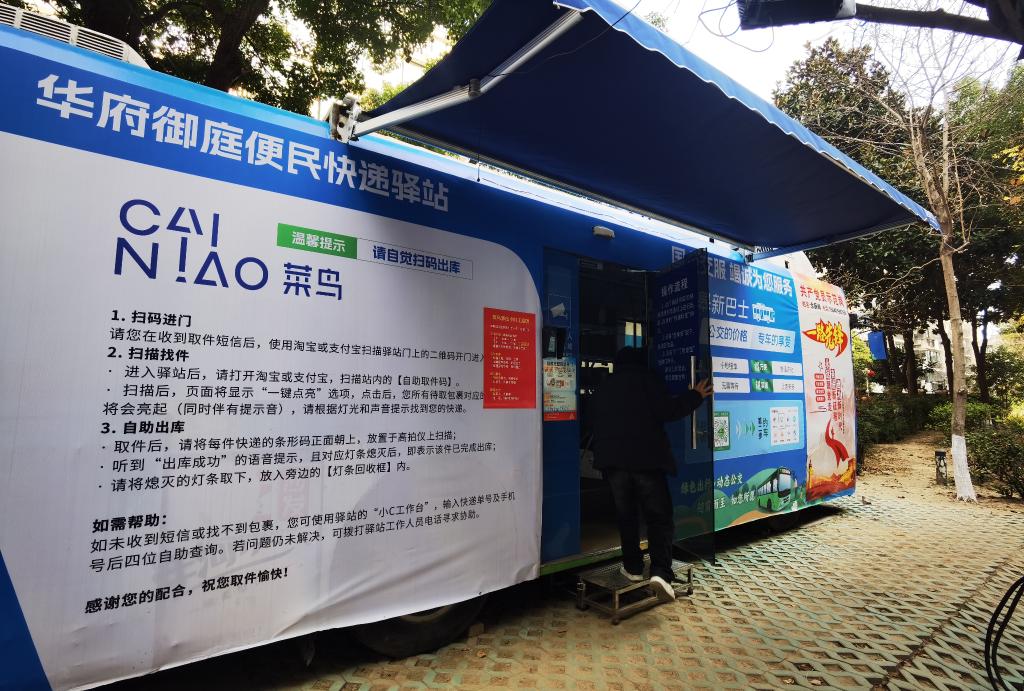 停放在华府御庭小区西门的公交快递驿站。记者朱旭东 12月9日摄