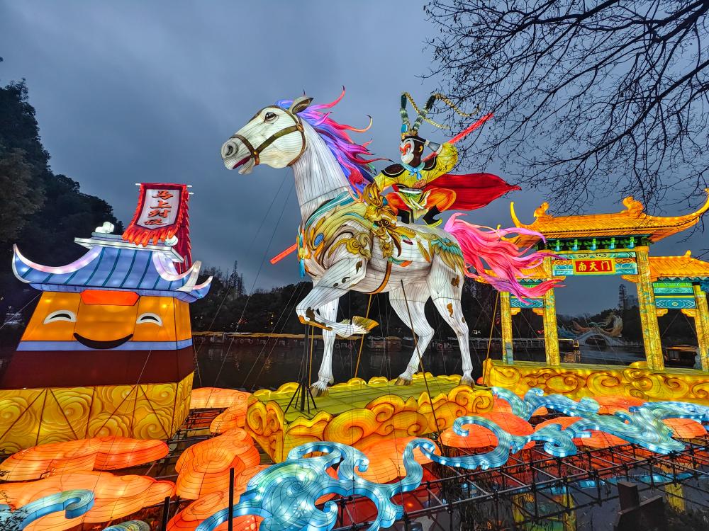 这是12月23日拍摄的“灯映华彩 夜泊秦淮”白鹭洲公园精品灯彩艺术展区。
