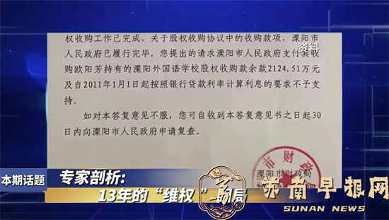 程轶侠记者:主持人好,观众朋友们好,近日,溧阳市政府与欧阳女士之间的股权转让纠纷引起了社会各界的广泛关注。