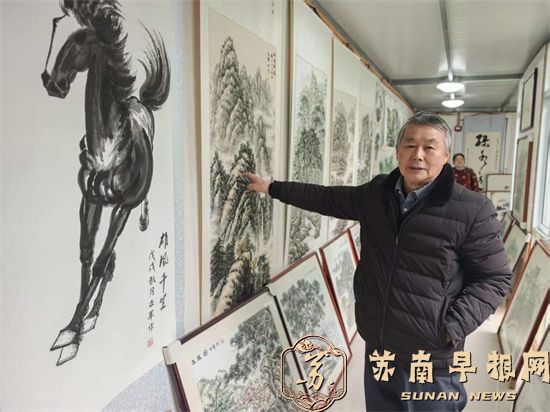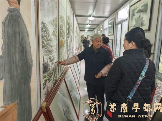会员们还参观了周正军院长设在家中的创作室。创作室里的书画作品琳琅满目,有不少作品入围无锡书画展。大家融入其中,深感书香近墨,画作相邻的意境。