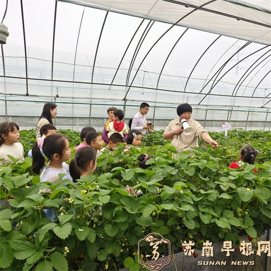 苏南早报讯(图文/梁红芳 毕庆元)近日,镇江市农业科学院(省科普教育示范基地)在华阳园区举办主题为“邂逅‘莓’好生活,悦享春日时光” 草莓科普教育实践活动,句容市崇明小学一(四)班90多名师生、家长参加。