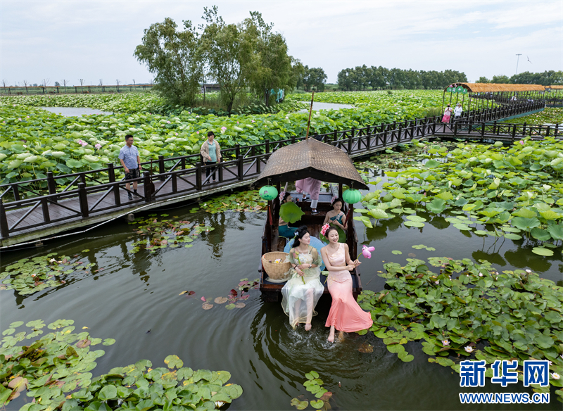 苏南早报讯 近日,江苏省兴化市万亩荷塘景区的荷花绽放,荷香浮动,引来众多游客前来赏荷游玩。(沙佳仪 报道员:周社根)