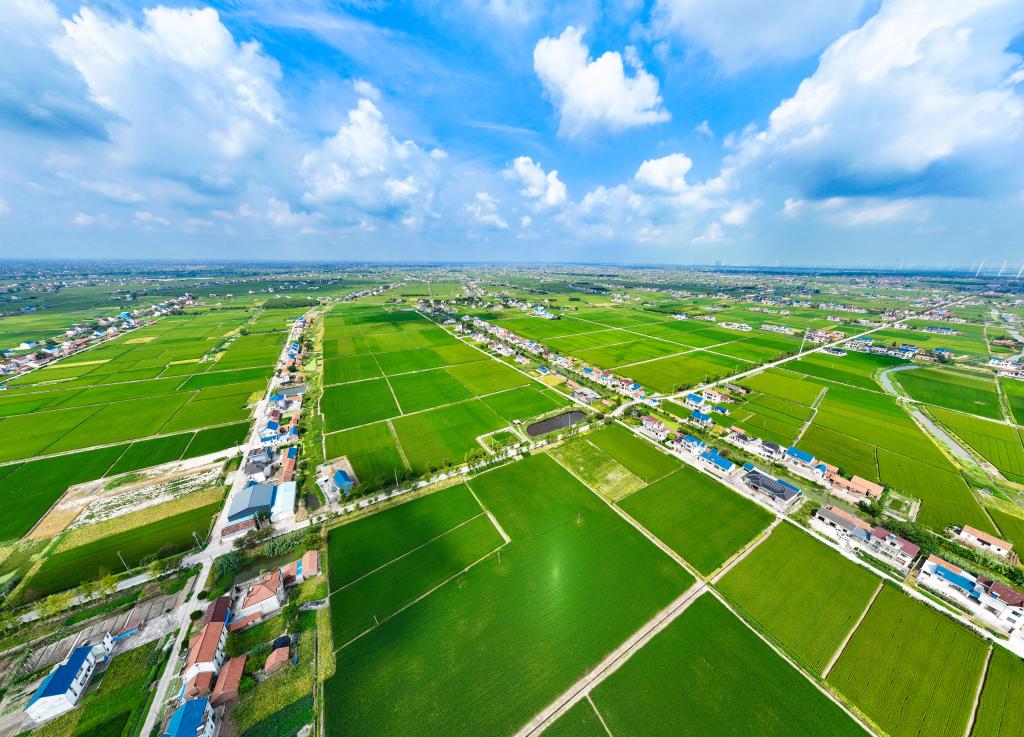 高标准农田一望无垠(8月30日摄)。如今,如东的滨海大地既展现出迷人的自然之美,又充满蓬勃的发展活力,为乡村全面振兴注入了强大动力。(摄影:赵烨佳)