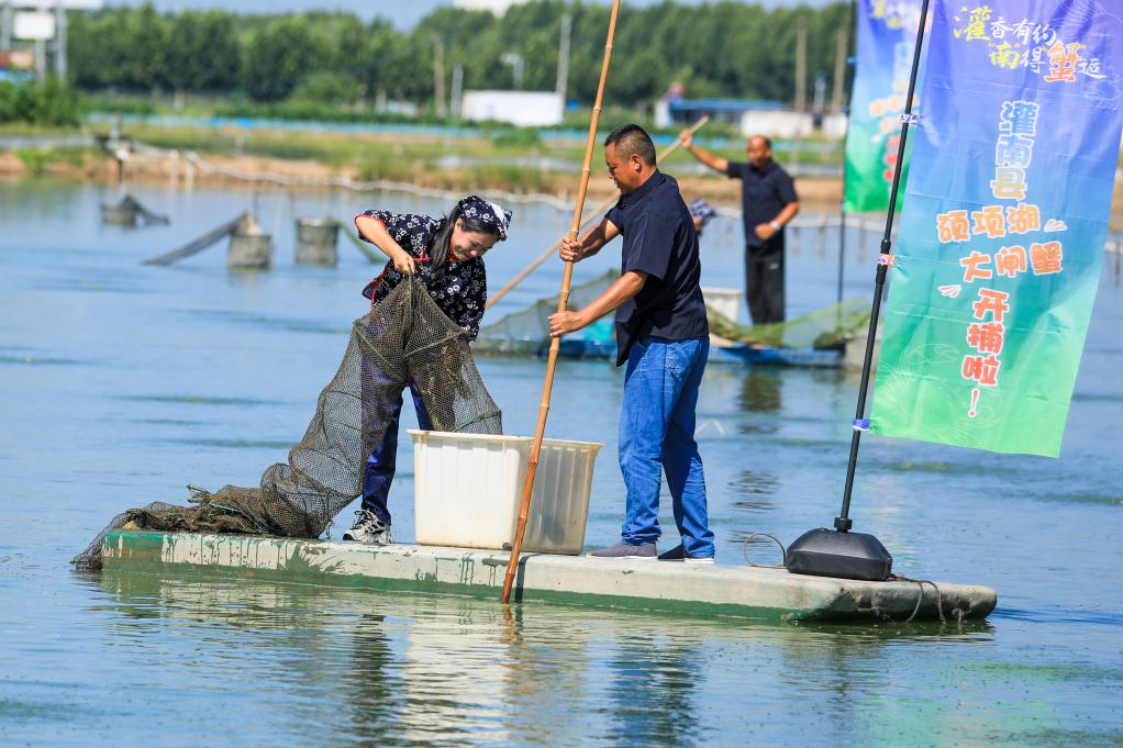 “今年持续的高温造成螃蟹大规模上市时间推迟大约半个月左右,但是苏北地区气温总体比苏南要低,昼夜温差更大,所以螃蟹上市时间比南方要提早半个月左右。”灌南县水产养殖指导站站长韦娟介绍,今年灌南县螃蟹亩产在150千克左右,虽然今年产量有所下降,但是价格上去了,每亩经济效益可达到1.5万元左右,预计今年全县螃蟹总产值将突破3亿元。