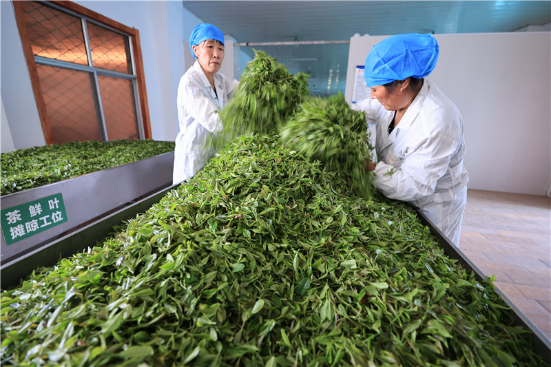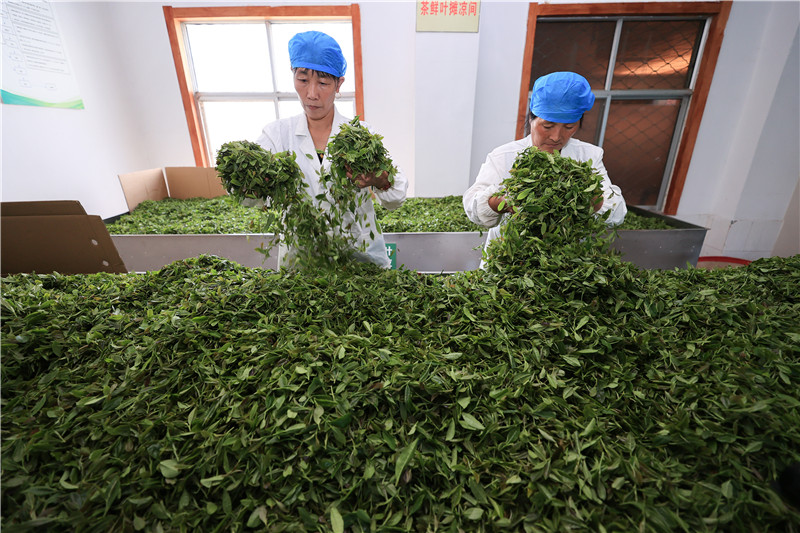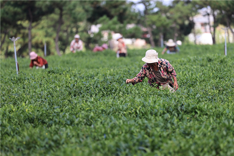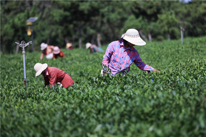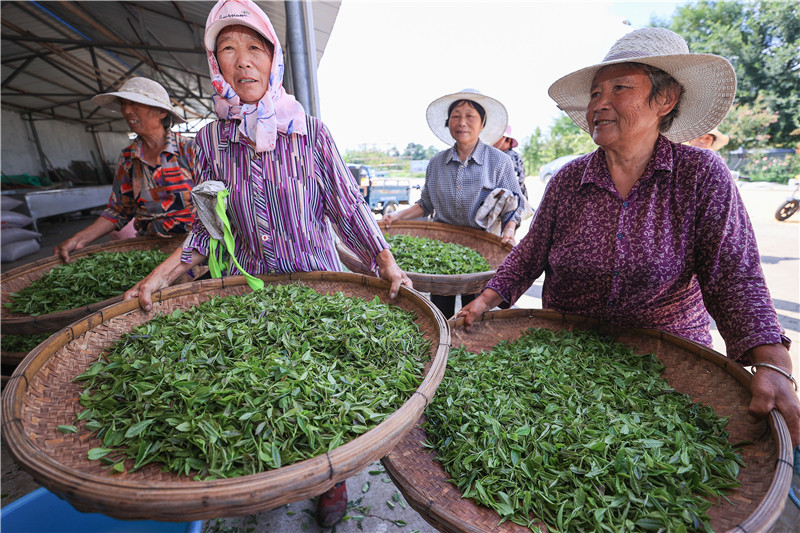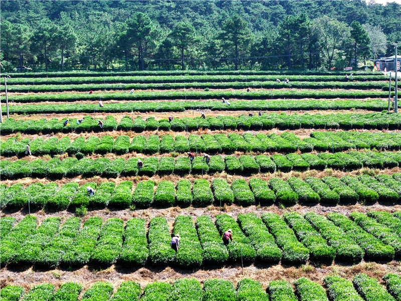 苏南早报讯 眼下,江苏省连云港市赣榆区金山镇的秋茶进入采摘加工旺季。茶农们铆足干劲,加紧采制,满足中秋、国庆节日市场需求。