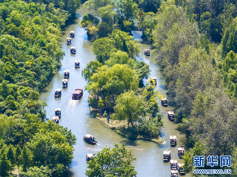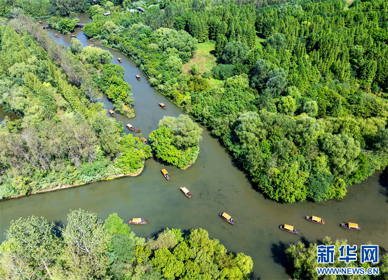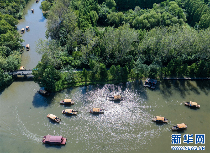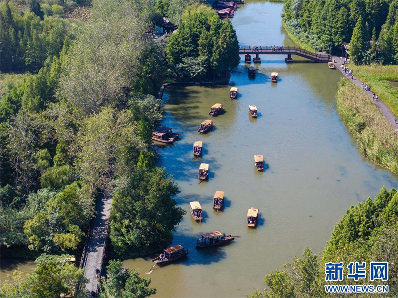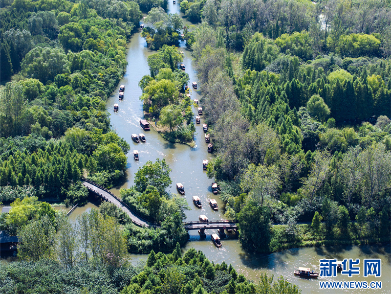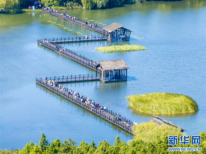 苏南早报讯 国庆假期,游客在江苏省泰州市姜堰区溱湖国家湿地公园乘船游玩,乐享假日时光。(沙佳仪 周社根)