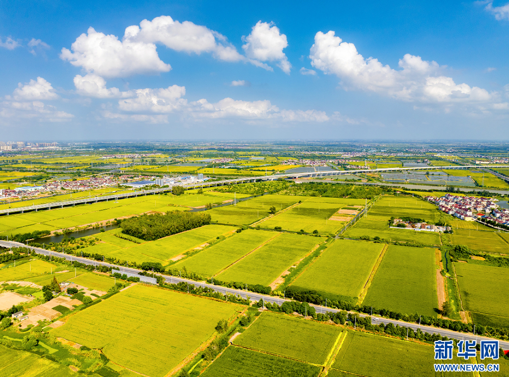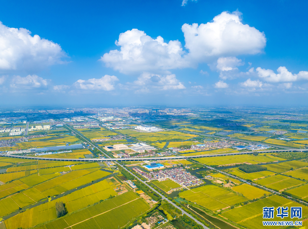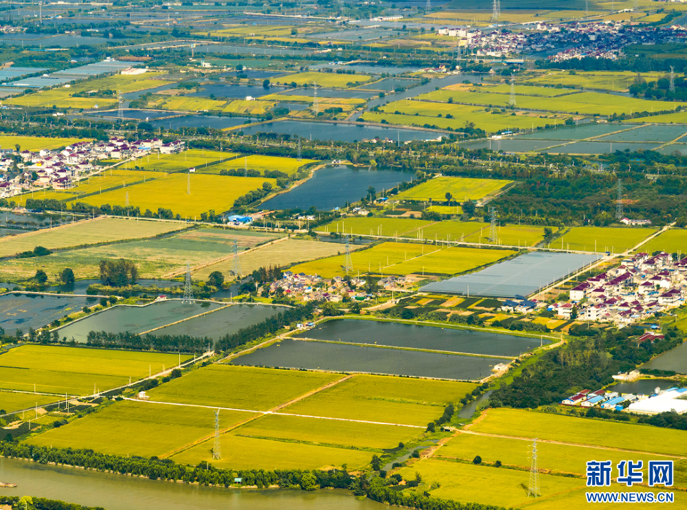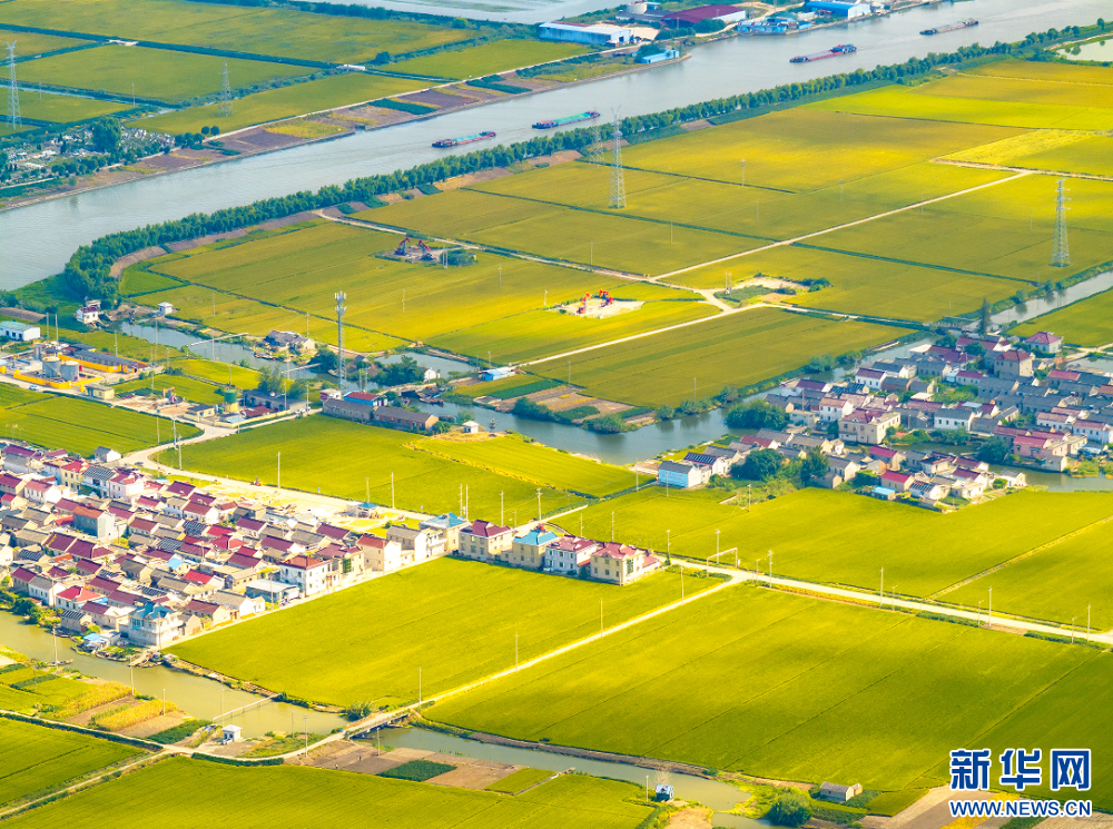 苏南早报讯 近日,江苏省兴化市大片稻田迎来成熟期,金色的稻田与蓝天白云、蜿蜒小路、阡陌田埂、村居构成一幅壮观的丰收画卷。(沙芳如 周社根)