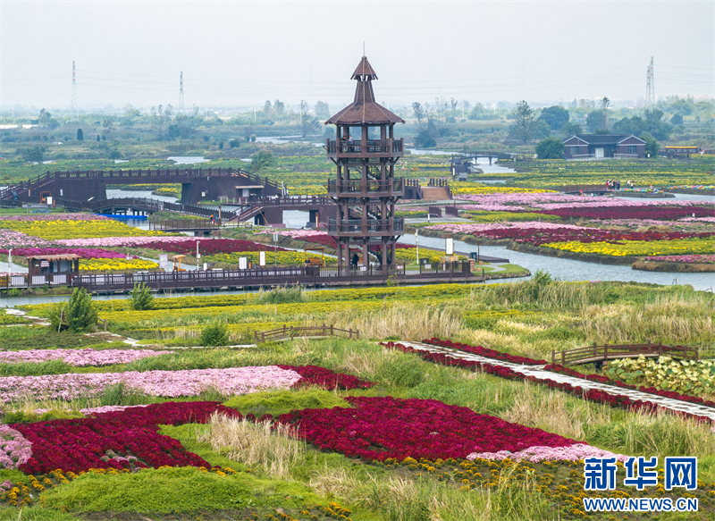 苏南早报讯 金秋十月秋色浓,江苏省兴化市千垛景区的菊花竞相开放,垛上五彩斑斓,美如画卷。(沙佳仪 周社根)