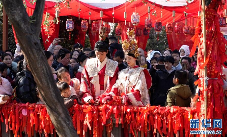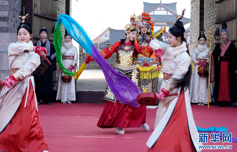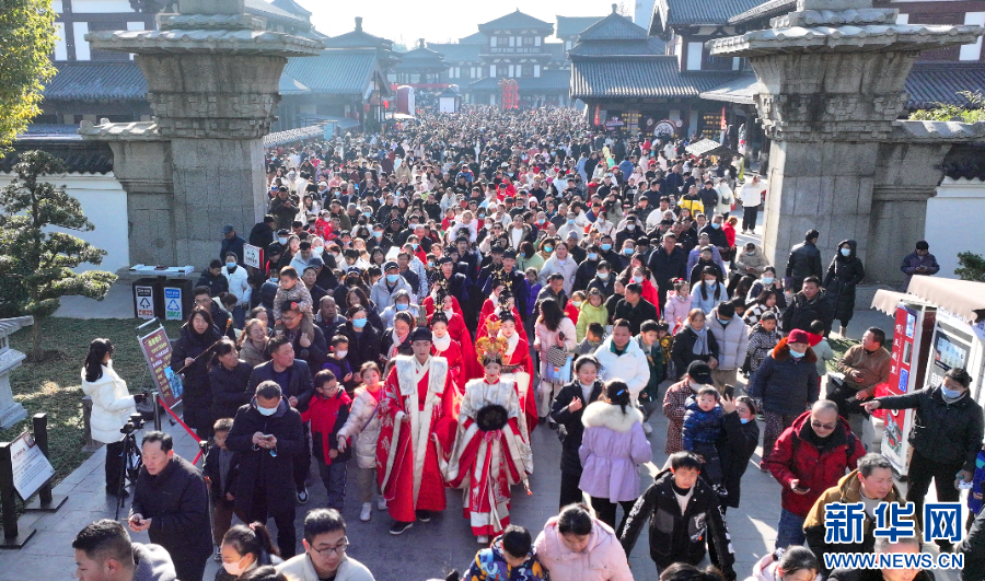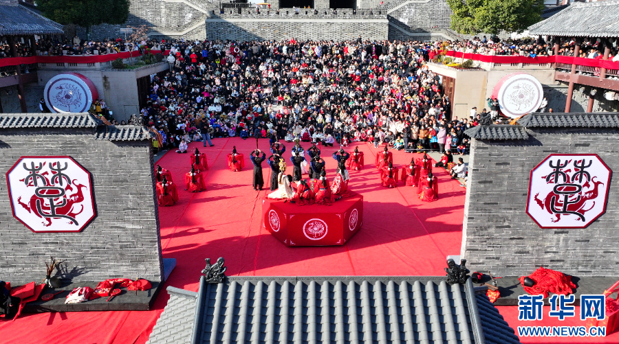 苏南早报讯 1月1日上午,在宿迁项王故里景区门前,2025“霸王迎宾大典”活动举行。由表演者扮演的“项羽”与“虞姬”率众迎客,鼓角齐鸣,热闹非凡,在这里游客可以尽情感受西楚文化的独特魅力。在项王故里盖世阁广场,古色古香的“霸王迎亲”热闹上演,喜迎新年的到来!(崔雯雯 杨群)