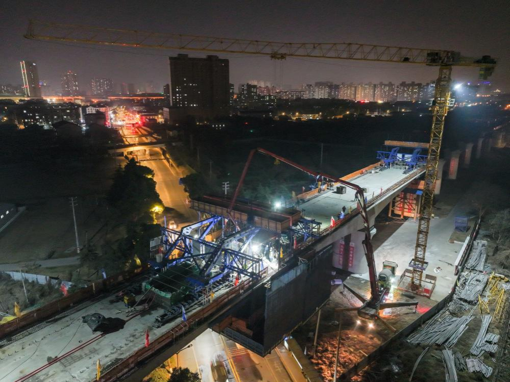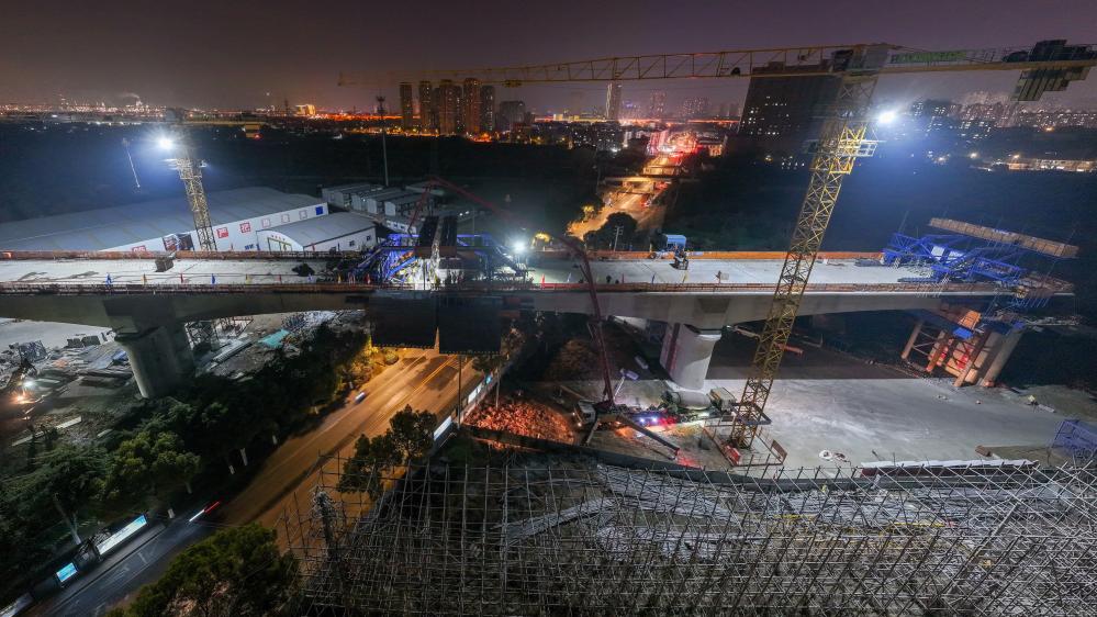 苏南早报讯 1月20日,沪渝蓉高铁(南京段)六合特大桥跨葛新路连续梁顺利合龙,这是沪渝蓉高铁(南京段)首个跨路连续梁,为后续架梁施工奠定了坚实基础。