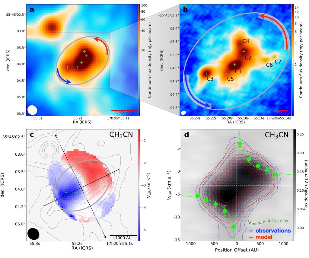 此次,由中、德、美、日、韩、加拿大等国16所高校、科研机构的学者组成一支国际联合团队,利用位于智利的阿塔卡马大型毫米波/亚毫米波阵列望远镜(ALMA),观测了一个距地球约4240光年的大质量恒星形成区NGC6334IN,在其核心区发现7颗原恒星,动力学分析与数值模拟结果显示,这个七星系统由吸积盘碎裂而来。