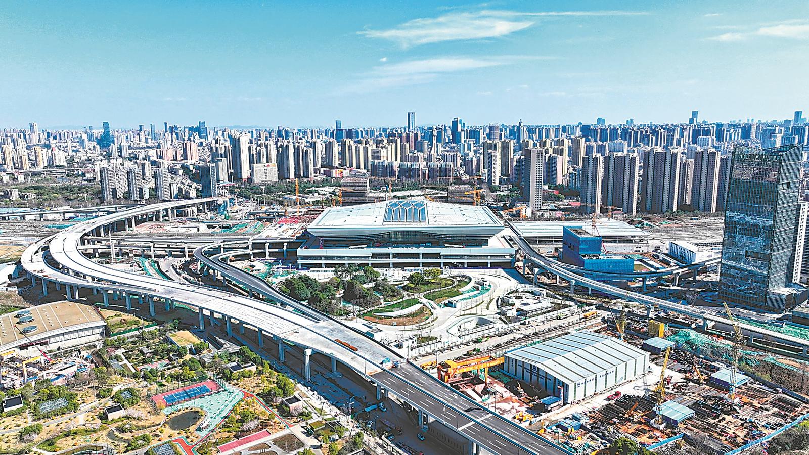 苏南早报网讯 新合肥西站是合肥铁路枢纽的三大客运站之一,国家“八纵八横”高速铁路网京港(台)通道上的主要客运站之一。计划今年底与合新高铁同步开通运营。通讯员 陈三虎 摄