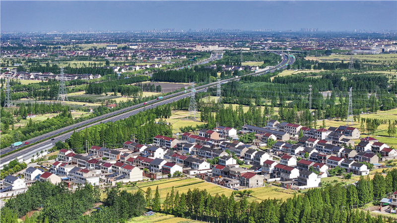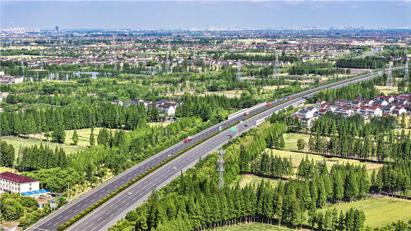 苏南早报讯 5月10日,江苏省泰兴市济川街道耿戴村,水杉林、高速公路、田野与错落有致的民居相映成景,构成一幅美丽的乡村田园生态画卷。