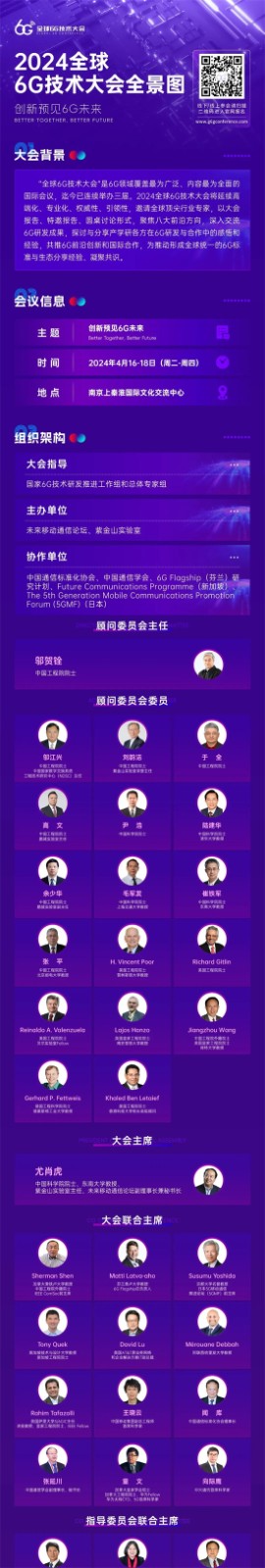 2024年4月16日至18日,2024全球6G技术大会将在南京上秦淮国际文化交流中心召开。