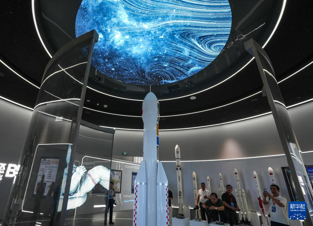 苏南早报讯 9月9日,在无锡商业航天展示馆,观众拍摄当地空天产业聚集区企业设计的火箭模型。