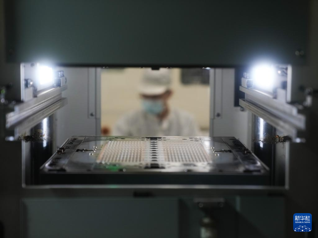 在位于江苏南通如东经济开发区的南通宁芯微电子有限公司,工作人员在测试车间内工作(11月2日摄)。