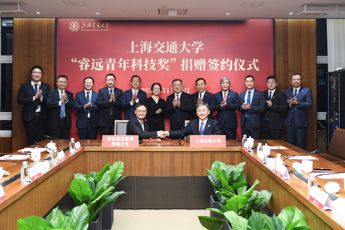 上海交通大学“睿远青年科技奖” 捐赠签约。新华网 发(受访者供图)