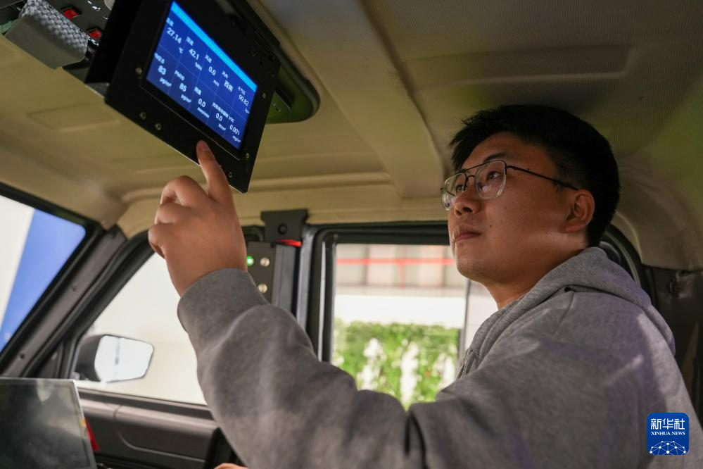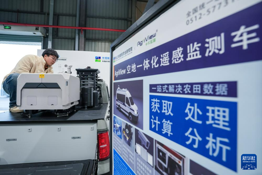 在中国农科院华东中心,工作人员在调试空地一体化遥感监测车(3月26日摄)。