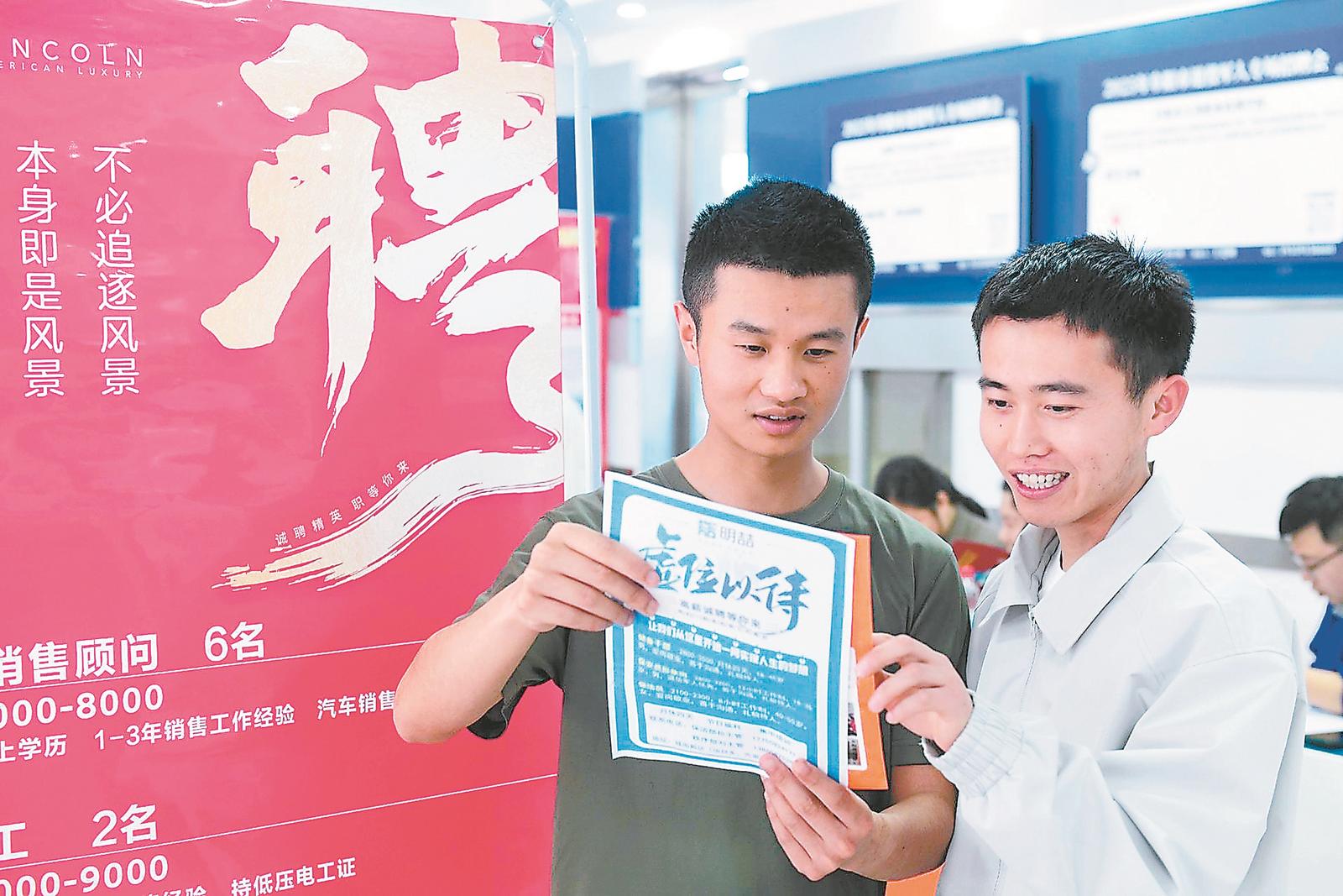 在招聘会现场,来自沪苏浙皖鲁豫的127家企业带来了7000多个优质岗位。工作人员在展台前介绍企业发展、薪资待遇等情况,热情接待求职者。
