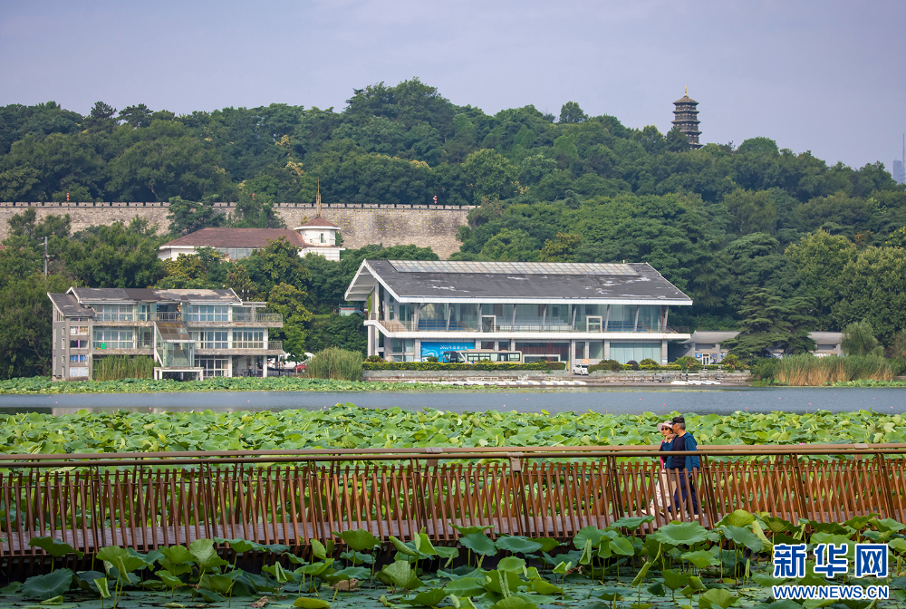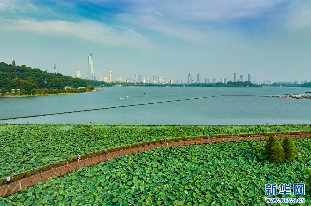 苏南早报讯 接天莲叶无穷碧,映日荷花别样红。近日,南京玄武湖满池的荷叶层层叠叠,粉白的荷花点缀其间,蔚为壮观,吸引众多市民游客前来打卡拍照。微风拂过荷塘,碧绿的荷叶在微风中摇曳,千姿百态,含苞待放的荷花镶嵌在荷叶间,绘就一幅美丽的田园画卷。(沙芳如 报道员:刘伟)