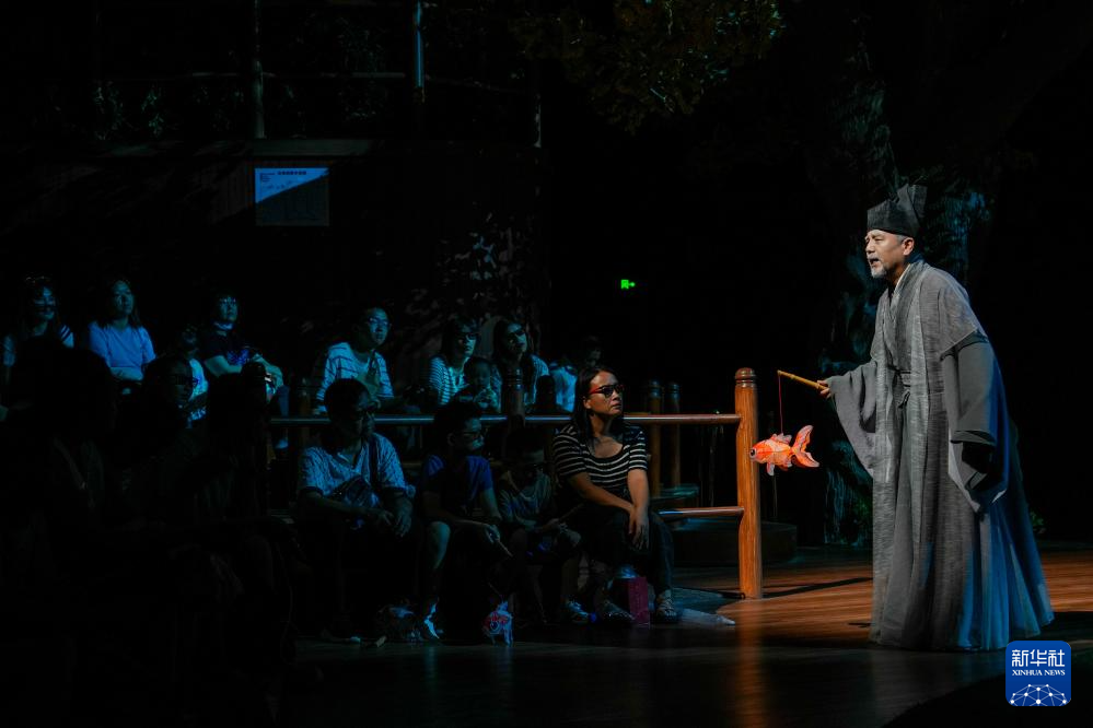 演员在行浸式多维空间剧《只此周庄》中表演(8月27日摄)。