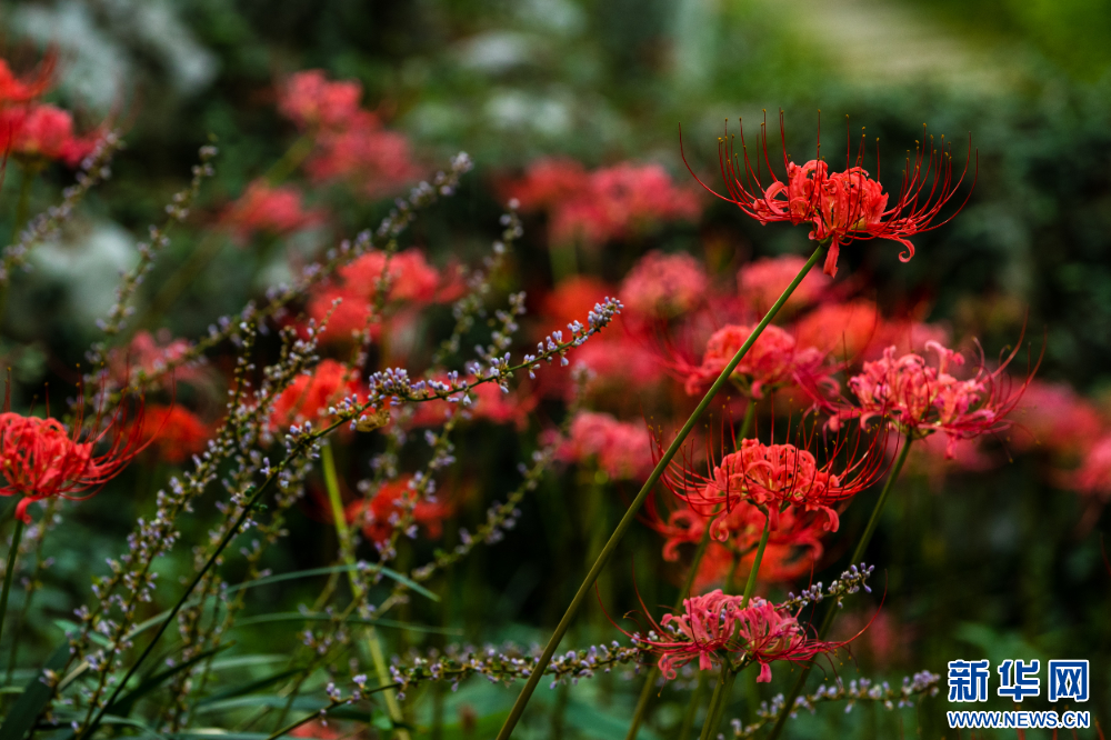 苏南早报讯 近期,南京玄武湖景区情侣园区域的红花石蒜率先进入盛花期,远远望去,艳丽妩媚。此外,翠洲区域的红花石蒜预计将在中秋假期迎来盛放。(崔雯雯 报道员:姚嘉琪、郭民意 拍摄支持:南京玄武湖景区)
