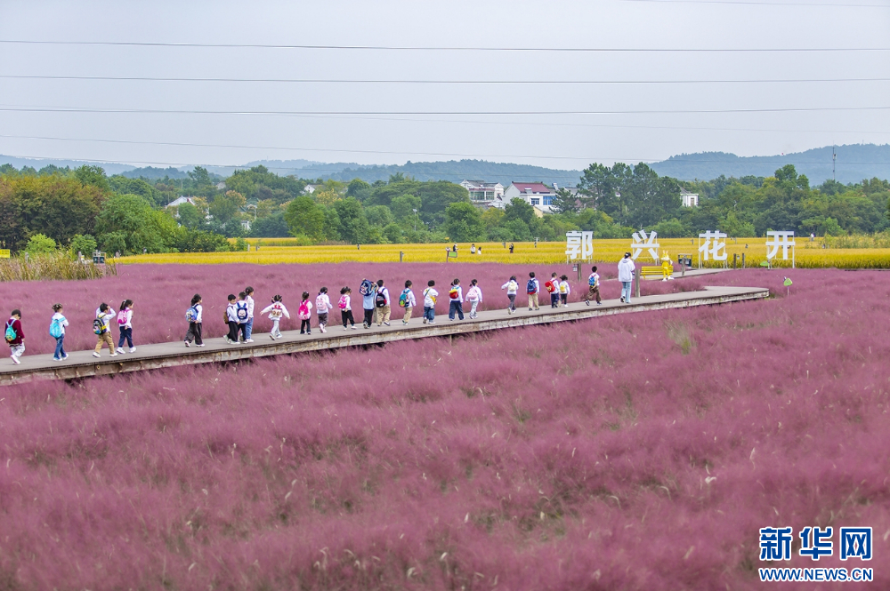 苏南早报讯 一抹粉黛入秋色,如烟似霞引客来。秋高气爽,又到了粉黛乱子草盛开的季节,在南京溧水郭兴庄园,这一“秋日限定”的“粉红浪漫”徐徐铺展。微风拂过,近150亩粉黛乱子草如一片粉色的海洋,处处弥漫着浪漫的气息,为金秋大地增添了一道迷人的景色。(沙芳如 刘伟)