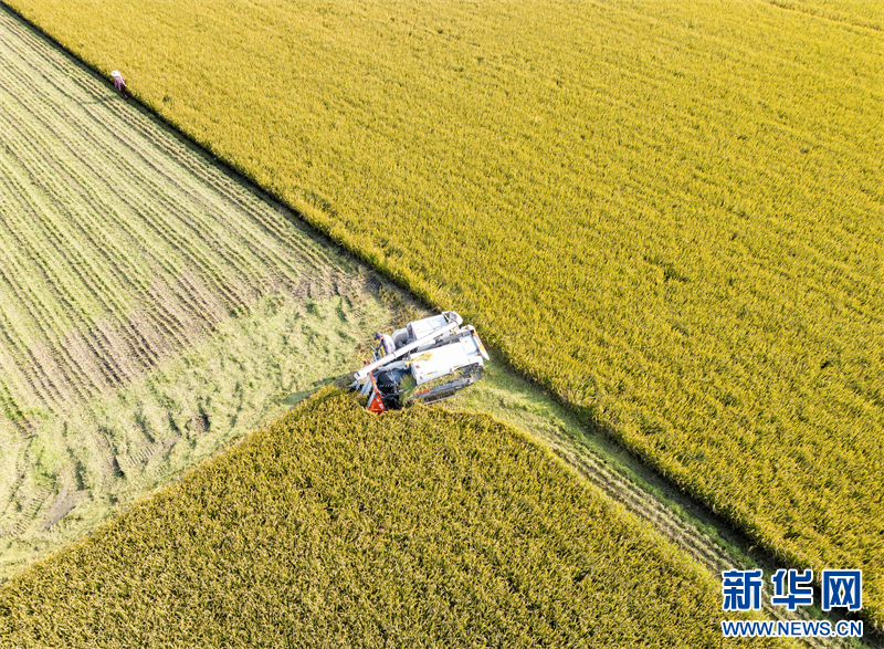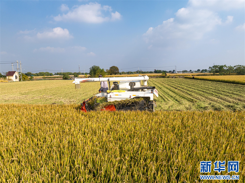 苏南早报讯 初冬时节,江苏省兴化市陈堡镇晚稻进入收割期,田间地头农民们辛勤忙碌,迎接冬收农忙季。(沙佳仪 周社根)