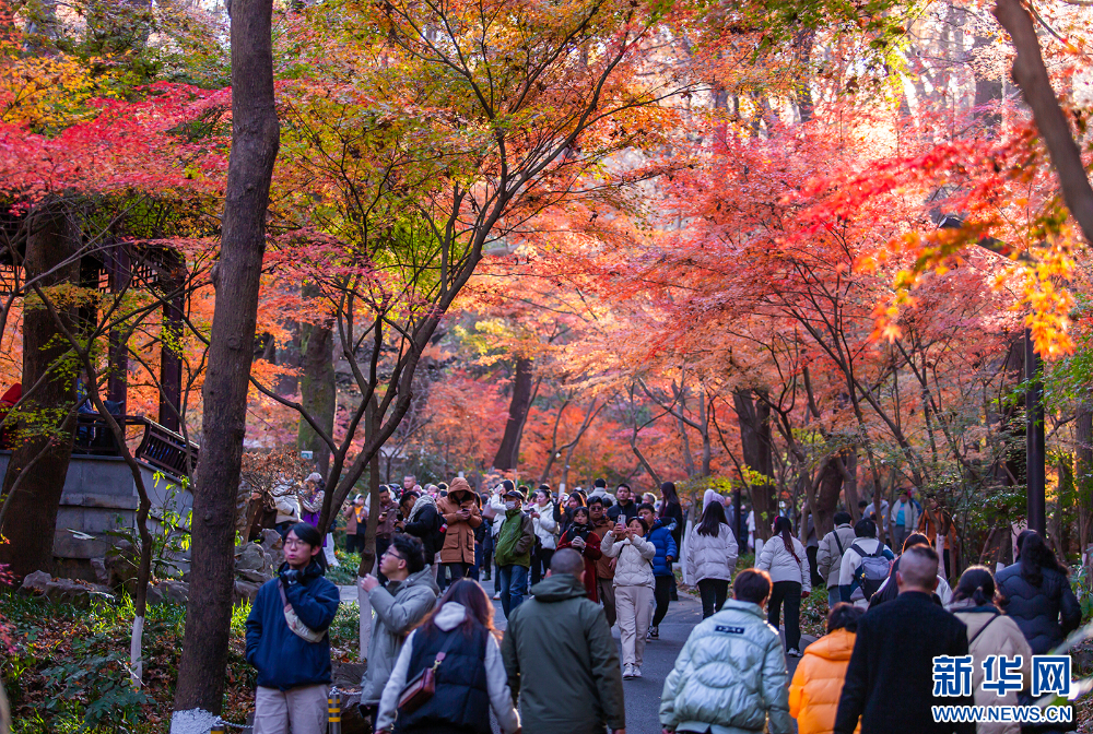 苏南早报讯 又到红叶烂漫时。近日,随着气温持续走低,著名赏枫胜地南京栖霞山进入全年色彩最丰富的季节。景区内枫香、红枫、羽毛枫等色叶品种呈现出浅黄、鹅黄、淡红、粉红等色彩,宛如五彩斑斓的油画,吸引众多游客前来打卡拍照。(沙芳如 刘伟)