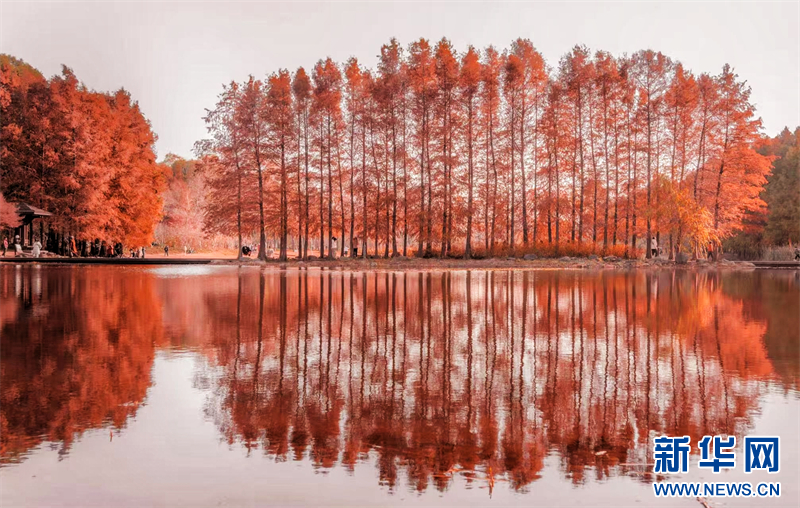苏南早报讯 近日,苏州虎丘湿地公园的红杉林换上华丽的“红装”,成片的落羽杉、池杉、柳杉、水杉进入最佳观赏期,静谧的水道被渲染得五彩缤纷,游人穿梭林间,宛如进入油画里。(沙佳仪 素材来源:姑苏发布)
