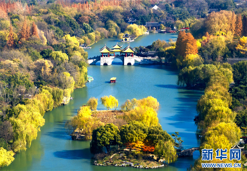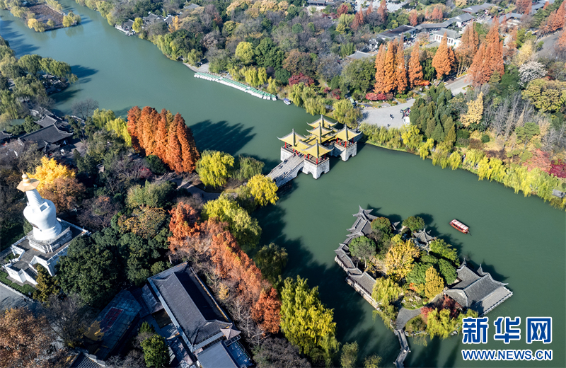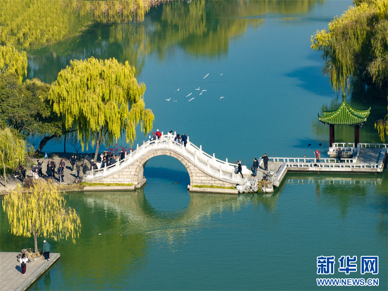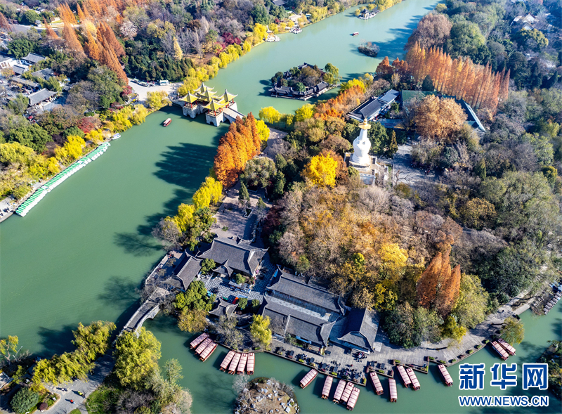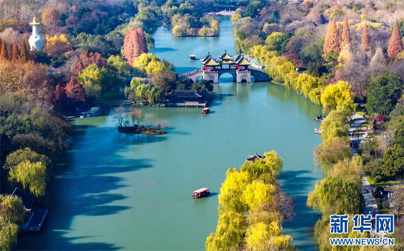 苏南早报讯 近日,江苏扬州瘦西湖风景区层林尽染、景色迷人,在蓝天白云的映衬下呈现出一幅美丽的冬日画卷,吸引不少游客前来赏景游玩。(沙佳仪 周社根)
